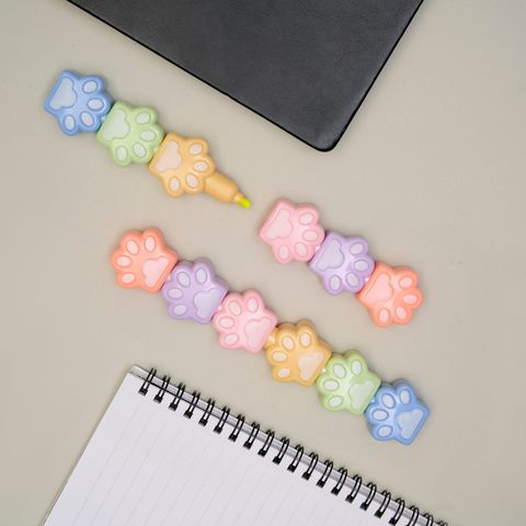 Cat Paw-Shape Fluorescent Pen Set Oblique Brush Tip Marker for School Office Stationery & Graffiti Painting Highlighting